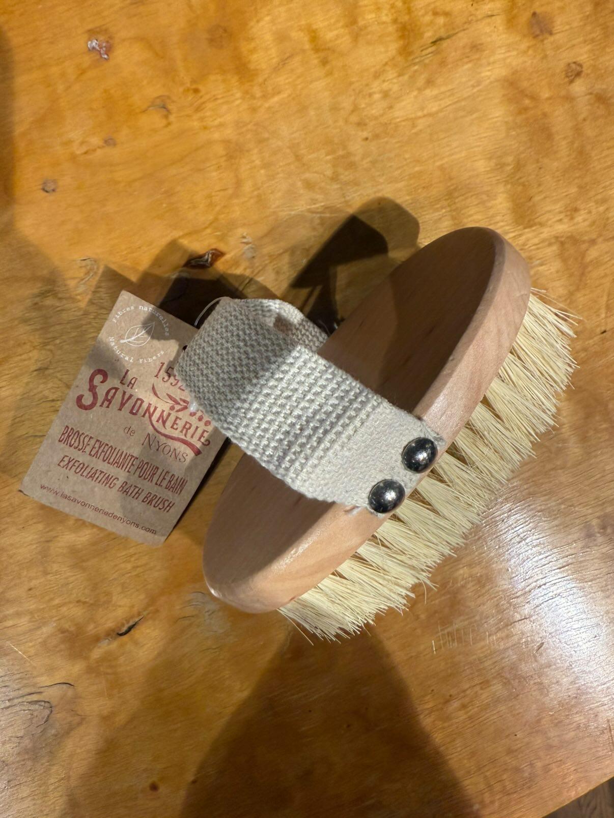 Torrborste med fasta borsthår som används på torr hud innan dusch för att exfoliera, stimulera blod- och lymfcirkulationen och ta bort döda hudceller.